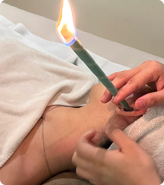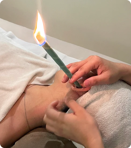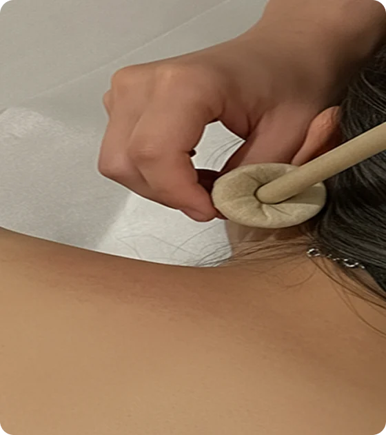 A relaxing wellness treatment using a hollow candle to create a warm, gentle vacuum effect. It draws out impurities and wax while promoting energy balance.